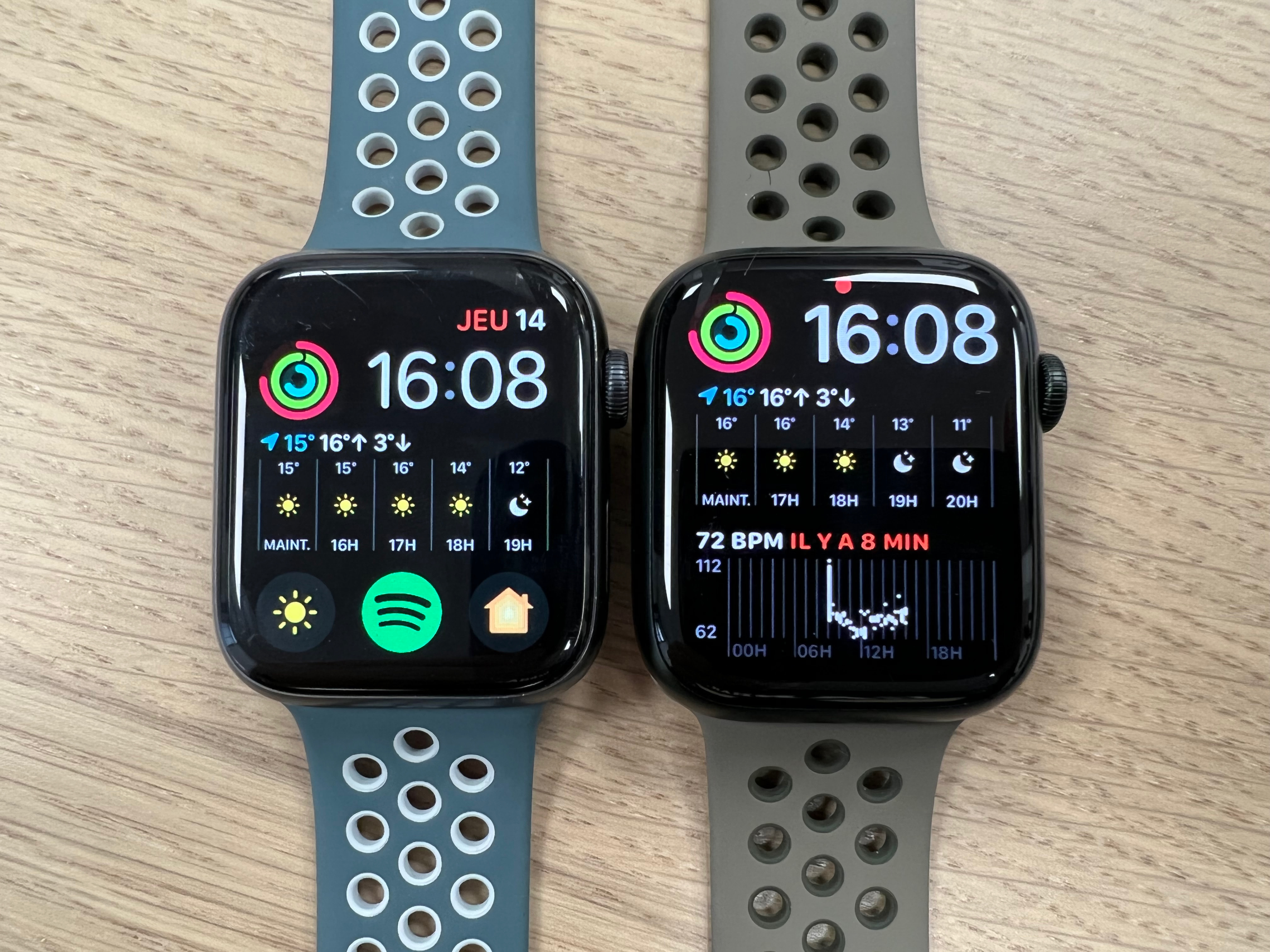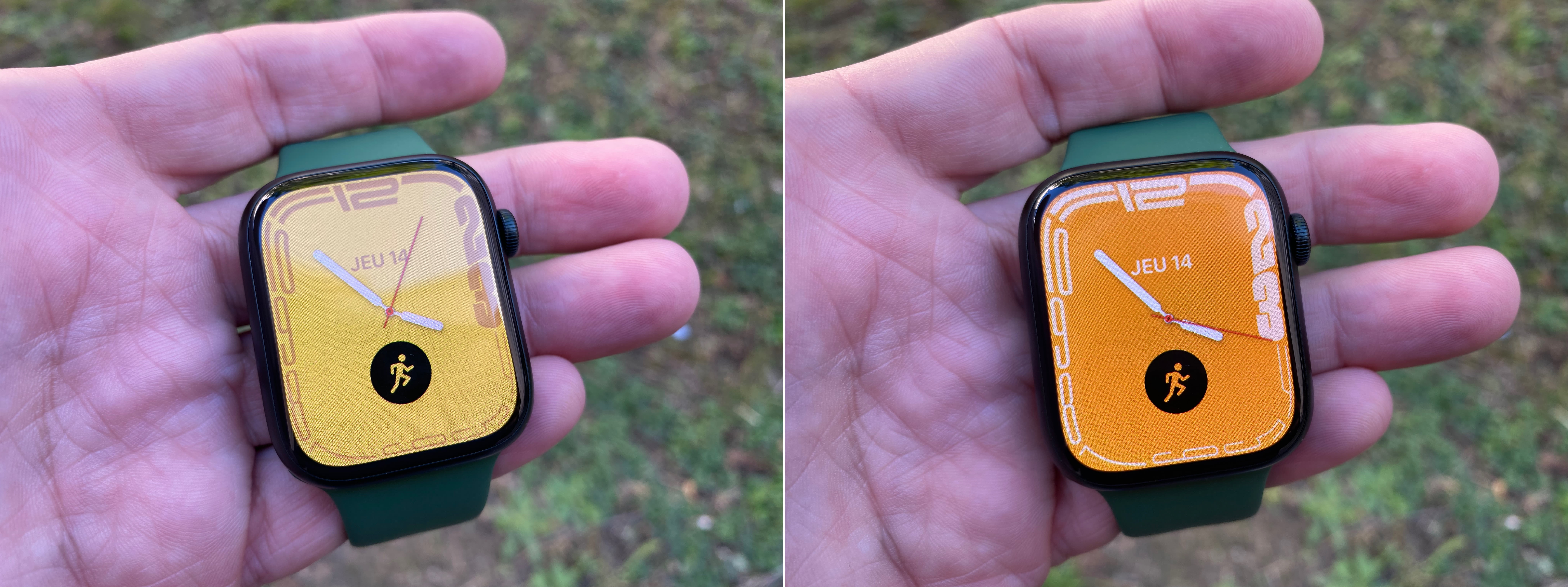 The Series 4, with its new size of 44mm, gave the impression of an object that had become more “imposing” on the wrist (all things considered). This feeling could manifest itself again when you strap in your Series 7 as a replacement for another generation. And on the screen, even if the size difference remains contained, the dials we used to seem to have gone under a magnifying glass, as if we had activated an accessibility function.